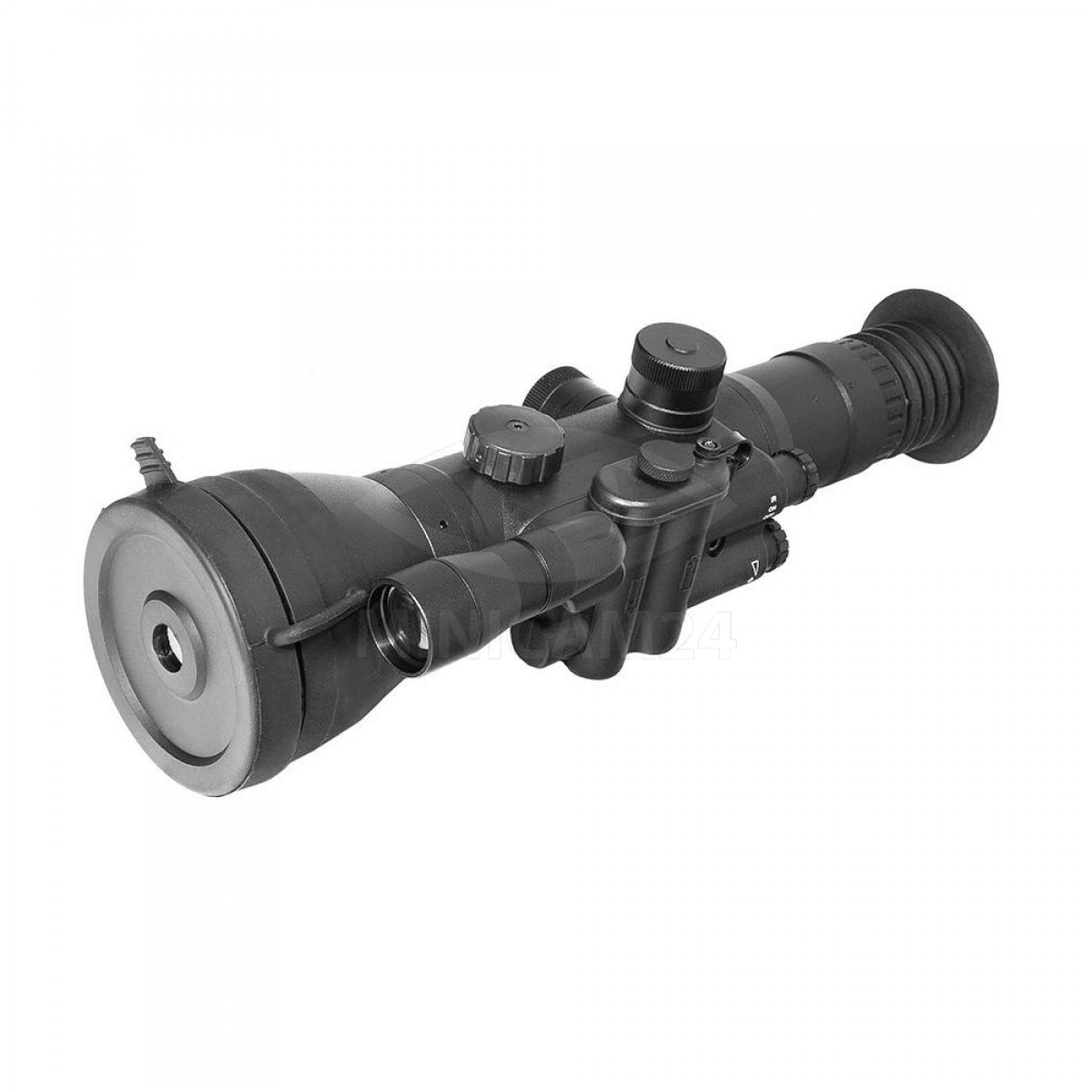 ЭОП поколения II+. Используется электронно-оптический преобразователь российского производства типа II+ c черно-белым люминофором. Обладает чувствительностью фотокатода 500мкА/лм и усилением яркости 25000-45000 крат. Разрешение 58 линий на мм. Имеет центрированную прицельную сетку типа MIL-DOT со светящимся центром и встроенный мощный инфракрасный излучатель. Большой светосильный объектив диаметром 100мм и четырехкратным увеличением. Адаптирован под патрон 12к Магнум и .375H&H